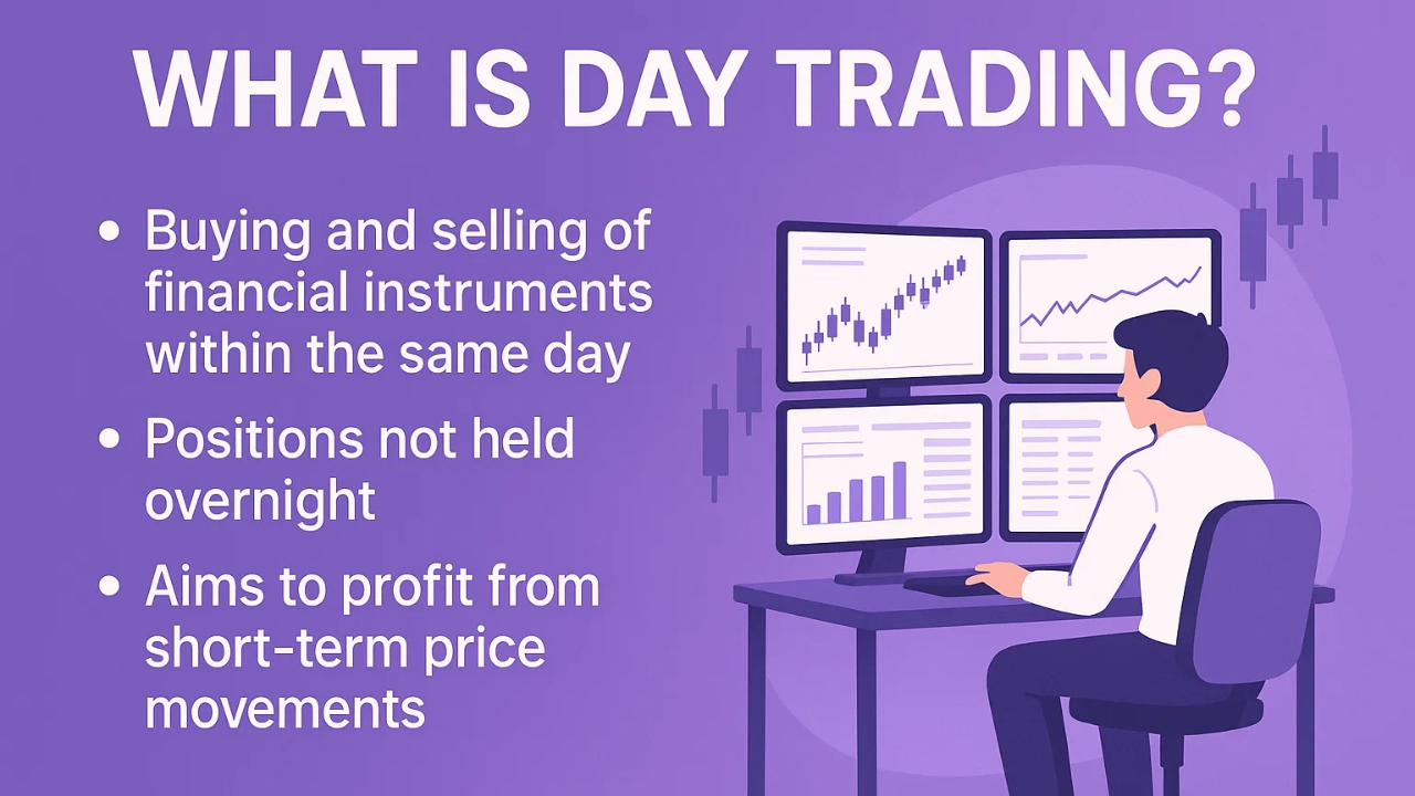 Day trading involves buying and selling financial instruments within the same trading day, allowing you to profit from short-term price movements in stocks, crypto, forex, and other markets